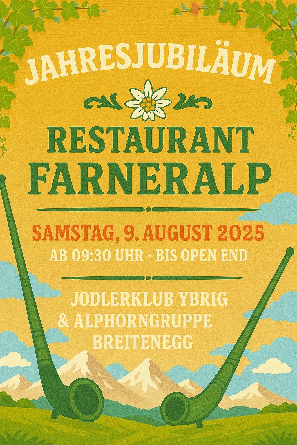 Samstag, 9. August 09:30 Jahresjubiläum Restaurant Farneralp